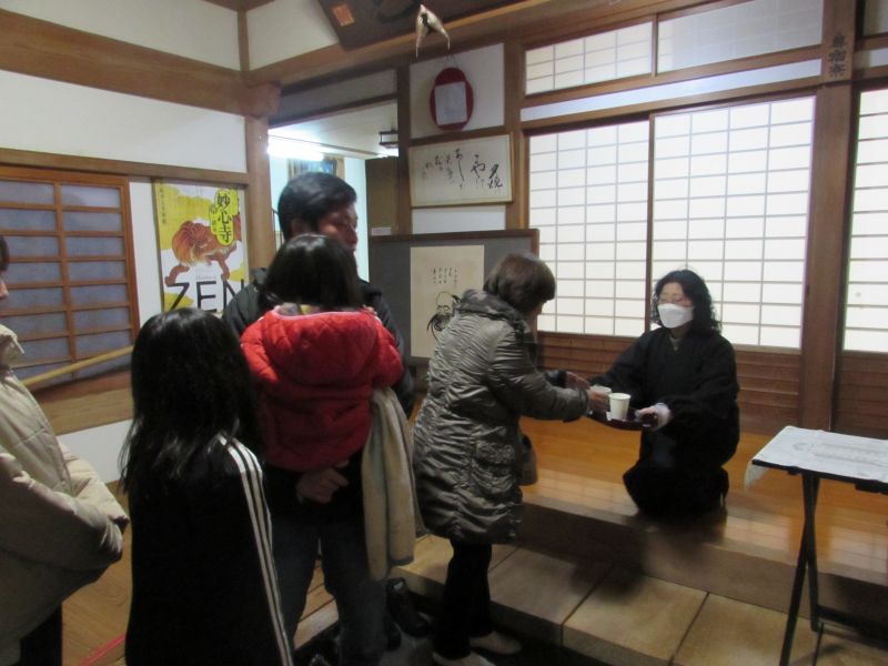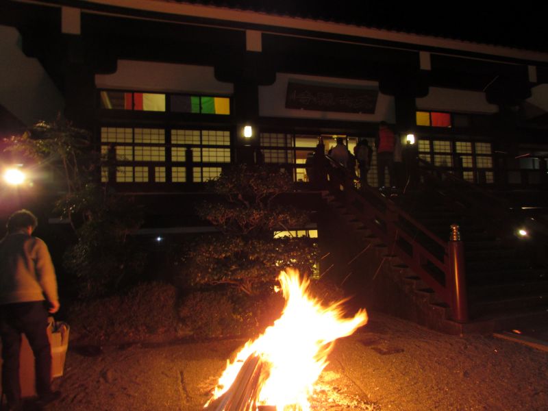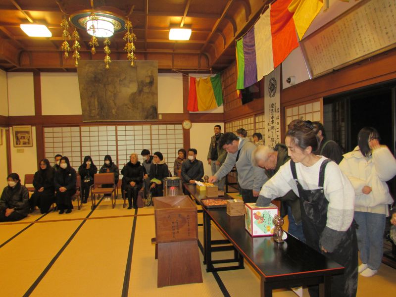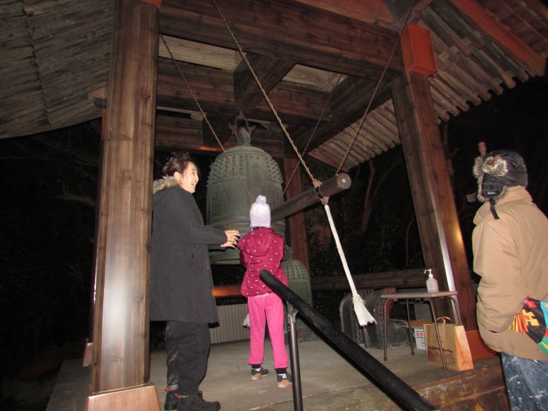 令和7年12月31日(水)から令和8年元旦(木)にかけて、除夜行事および大般若会が行われました。昨年に比べて寒さが緩んだせいか約100人が梵鐘をつき、本堂にお参りされました。8年度の干支の午のバッジが無料配布され、みかんと甘酒の接待が行われました。また、昨年度の卒塔婆などのお焚き上げが鐘撞堂前で行われ、干支みくじは完売となりました。今まで来られていなかった家族連れが増えたのが今年の印象です。正月1日の午後にお参りされる方も昨年に増して増えたようです。